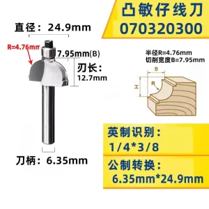 Dao phay hồ quang đáy sắc nhọn bằng gỗ, dao phay gỗ chuyên dụng, dao phay CNC, dao phay góc tròn lồi hình bán nguyệt