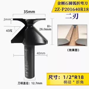 Dao cắt góc tròn ba lưỡi kim cương chế biến gỗ R góc rãnh CNC trung tâm dao cắt lõi tấm cửa