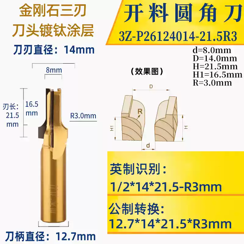 Dao cắt góc tròn ba lưỡi kim cương chế biến gỗ R góc rãnh CNC trung tâm dao cắt lõi tấm cửa