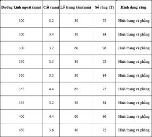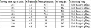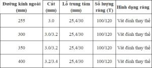 Thông số kỹ thuật của các loại lưỡi cưa PCD khác nhau